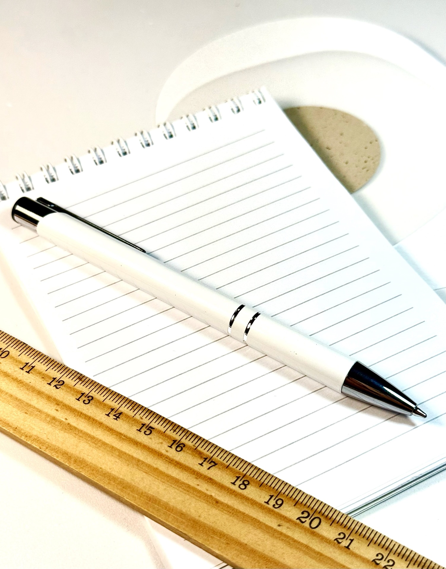 Hliníkové guľôčkové pero so sponou a kovovým povrchom.